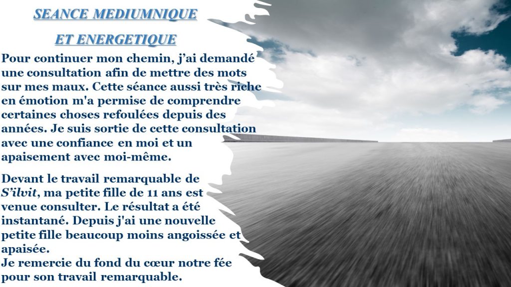 …Cette séance aussi très riche en émotion m’a permise de comprendre certaines choses refoulées depuis des années …